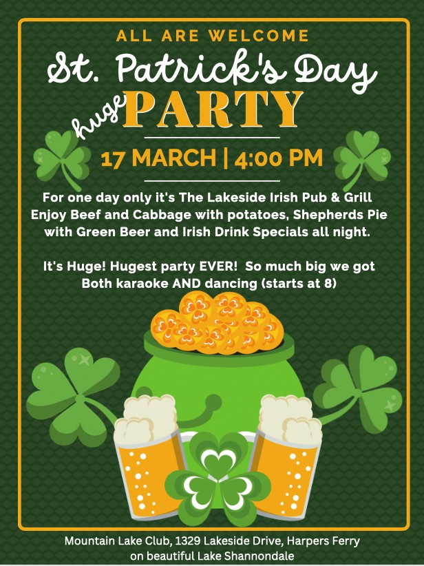 Join us to celebrate, Irish dinner specials, cocktails and GREEN 🍺 We open at 4pm come on by in your finest leprechaun suit! 🍀